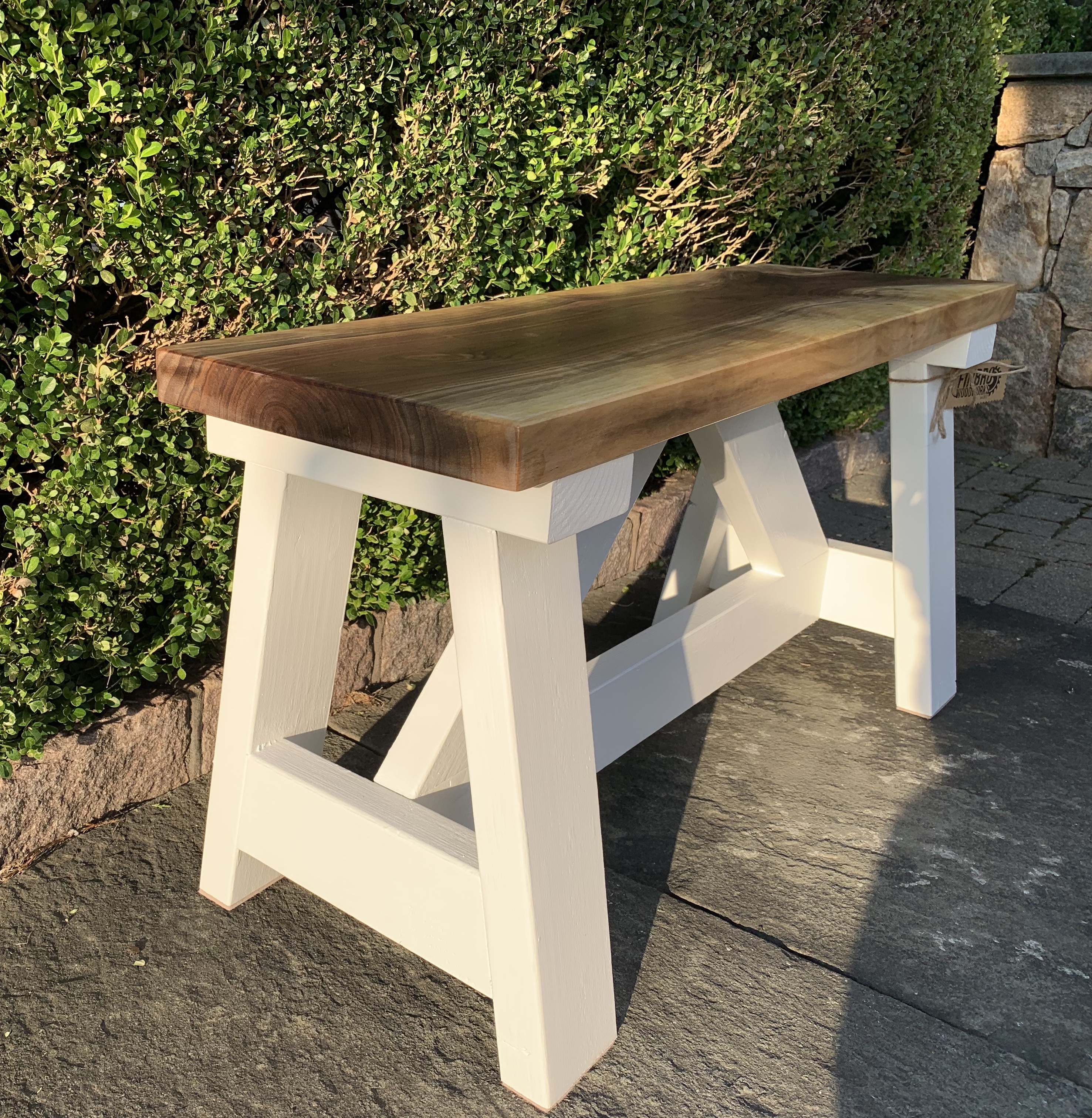Saddle up!! Whether you are slipping shoes on and off in an entryway, seated at the family table, or looking for that perfect piece to accentuate a room in your home, our benches are a perfect match. Choose your wood for the top, be creative with the base, and select your dimensions: we are happy to cater to your needs. Or, if you’d like, let us run with our own design team; you will be thrilled with the results. Typical heights range from 16” to 18” with a standard width of 12”, but size and dimension are really up to you! The length of a bench can be whatever your heart desires.