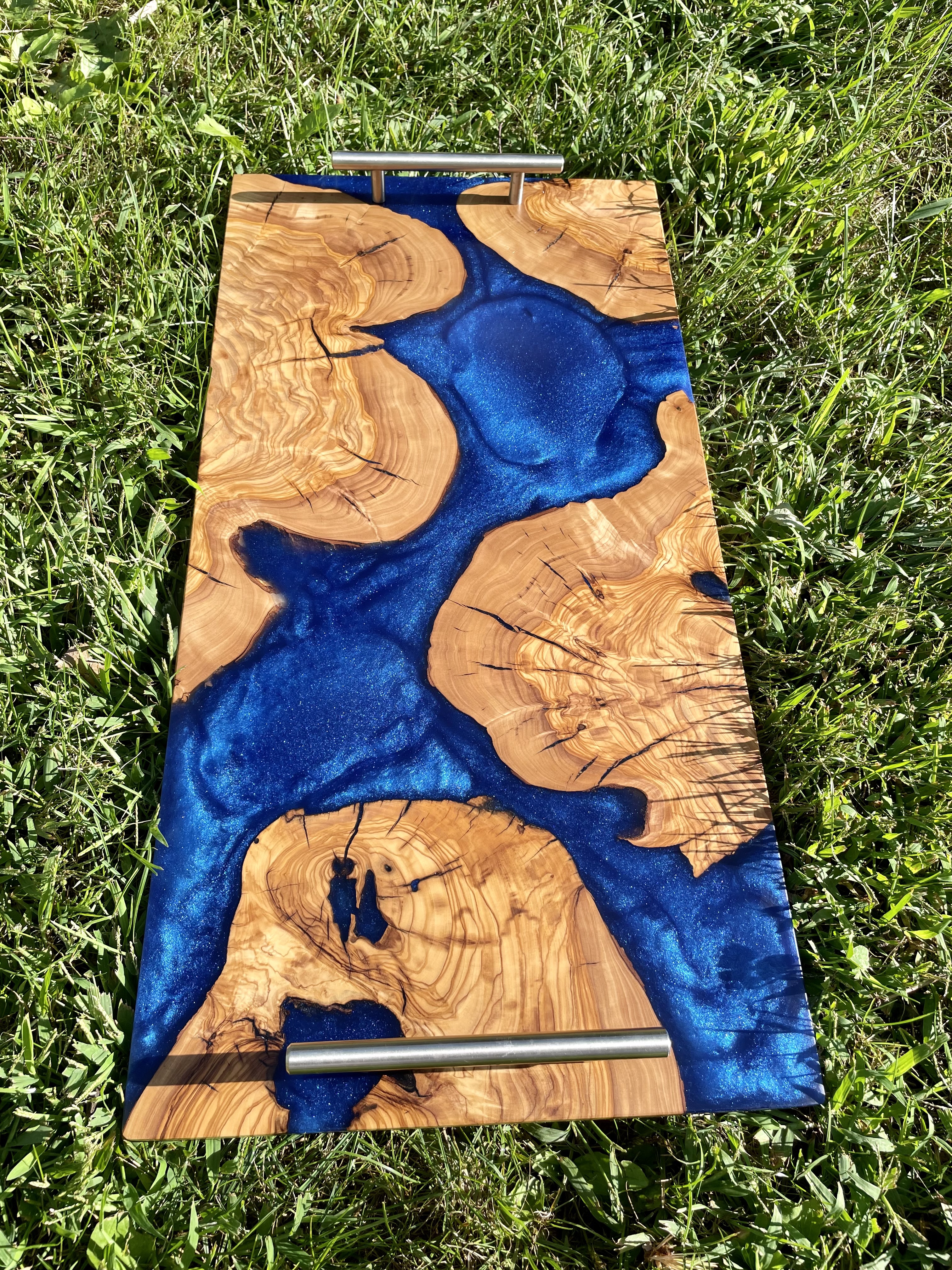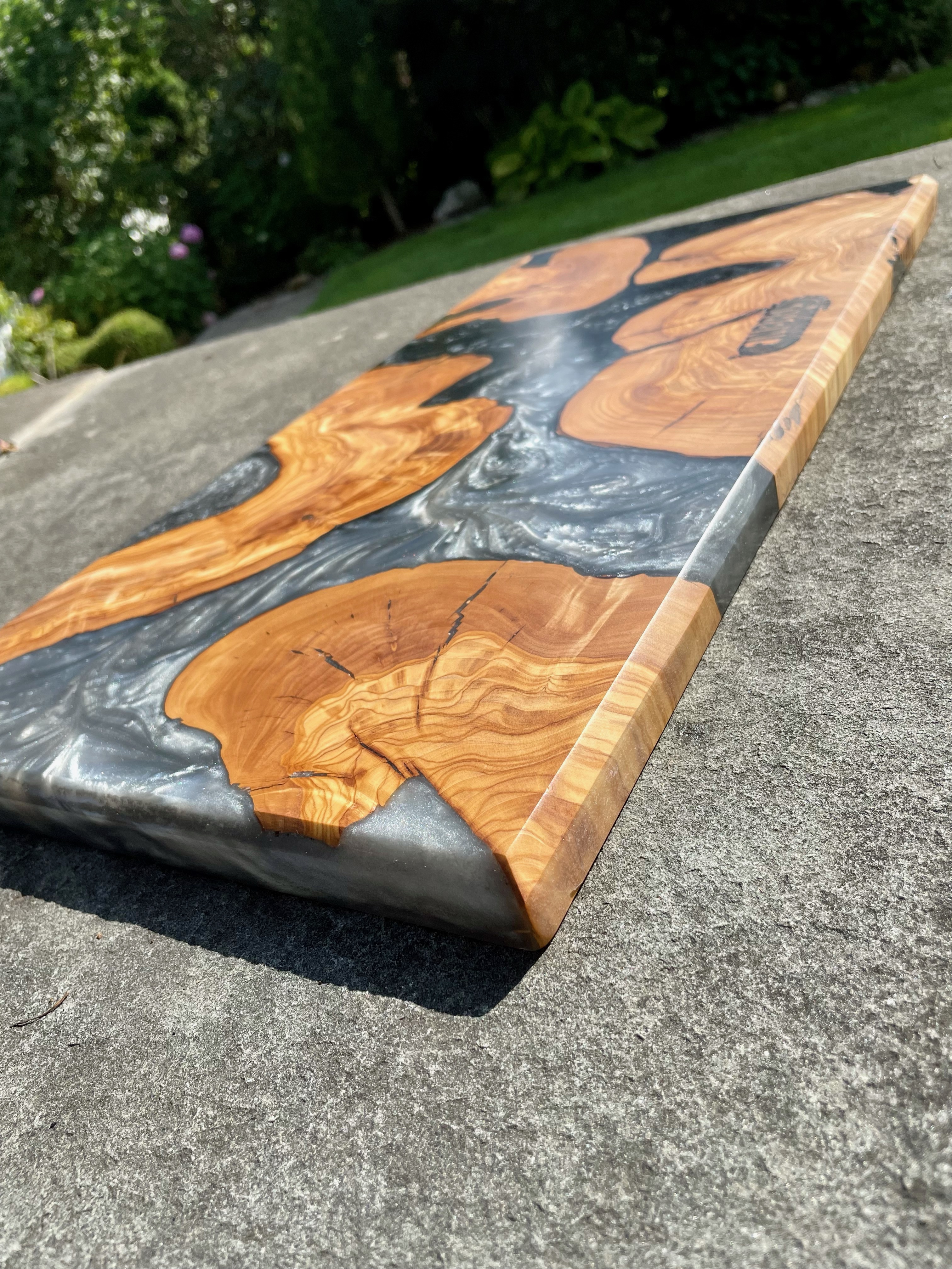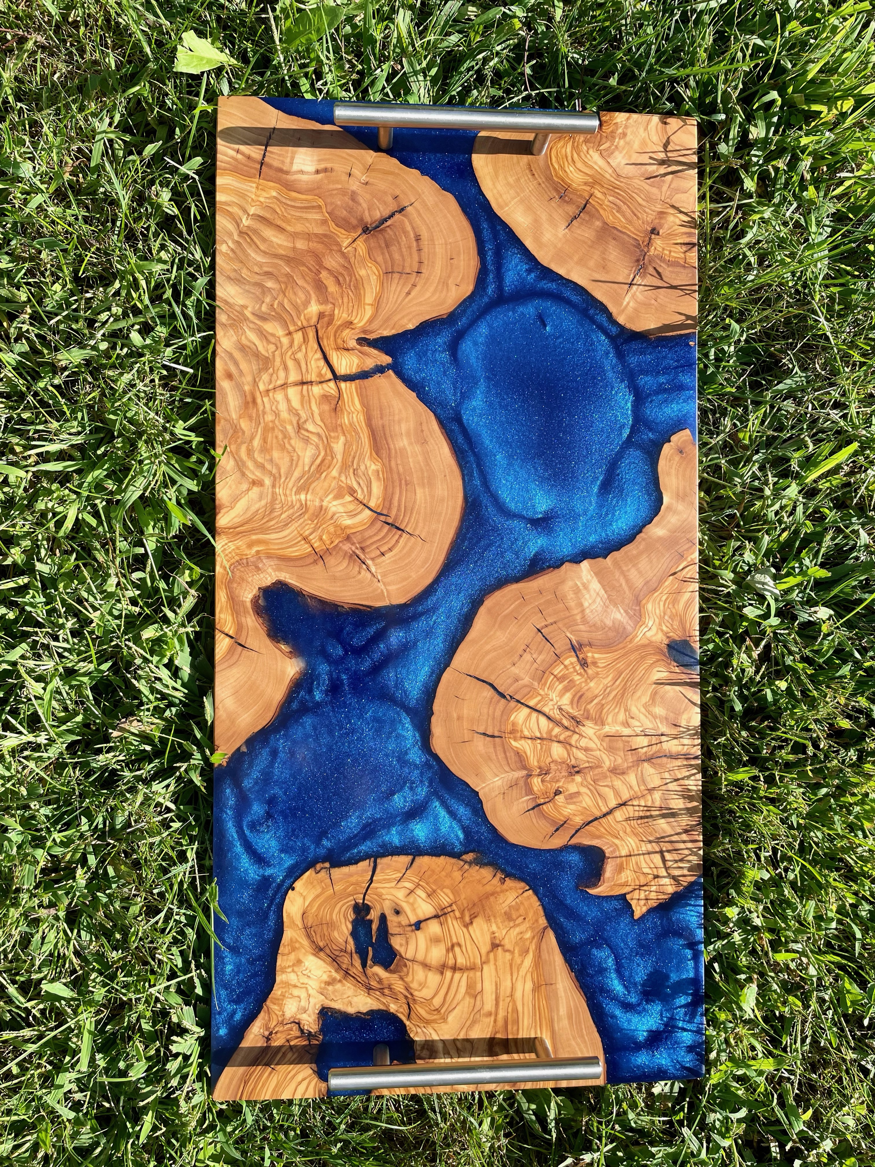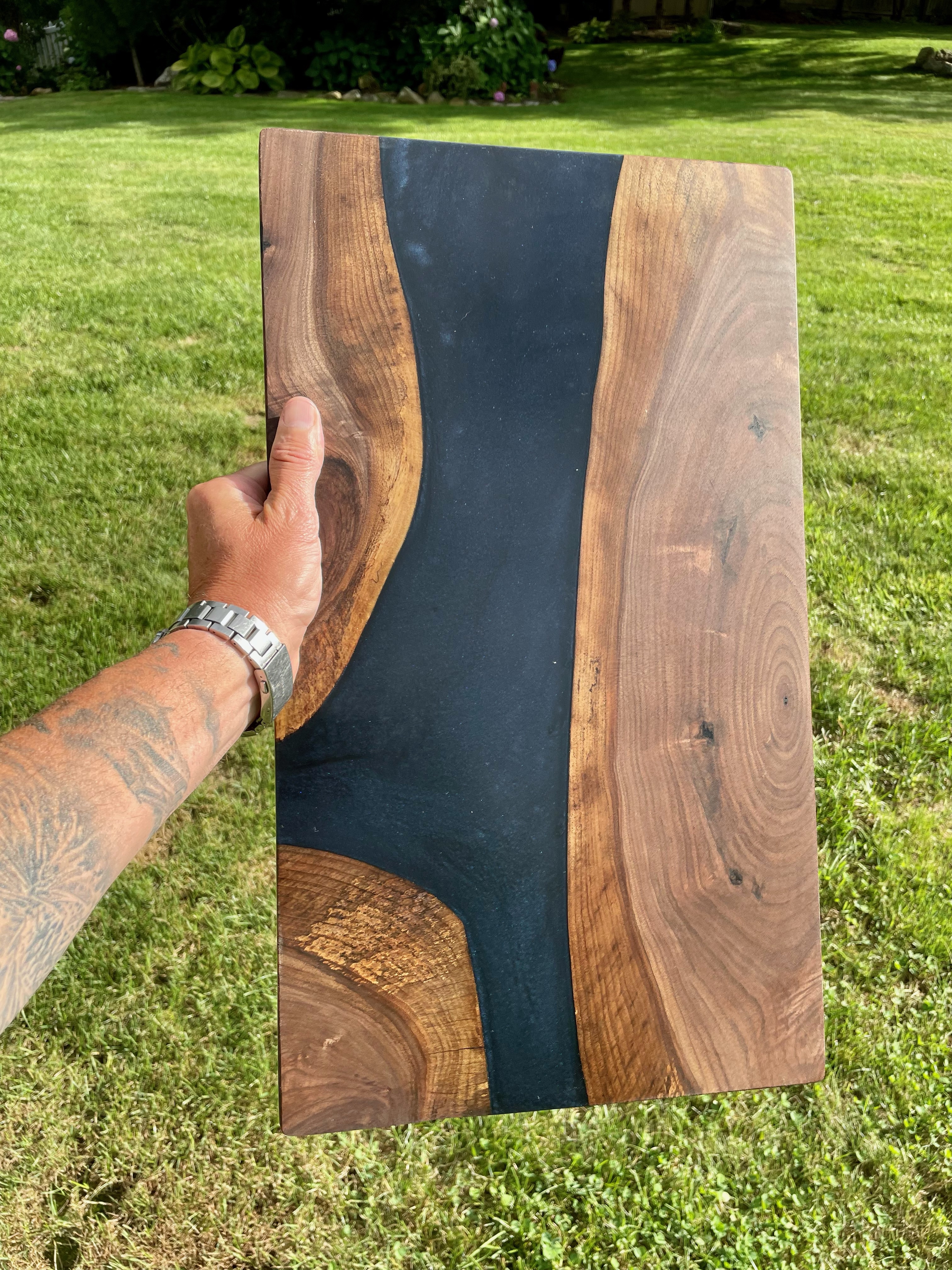 LET’S EAT!! Our charismatic charcuterie boards will provide an eloquent and bold compliment to the culinary bouquet of your choosing. From cured meats and cheeses, to fruits and nuts, olives, spreads and crackers, our hardwood boards, with or without resin accents, are crafted to meet your needs. Typically made from black walnut, cherry wood, olive wood or the like, we can make your artistic culinary presentations not only an experience for the body but for the eyes, mind and soul. Sizes vary, and customer preference is key. Representative standard size of 12”x24”x1” is typical.