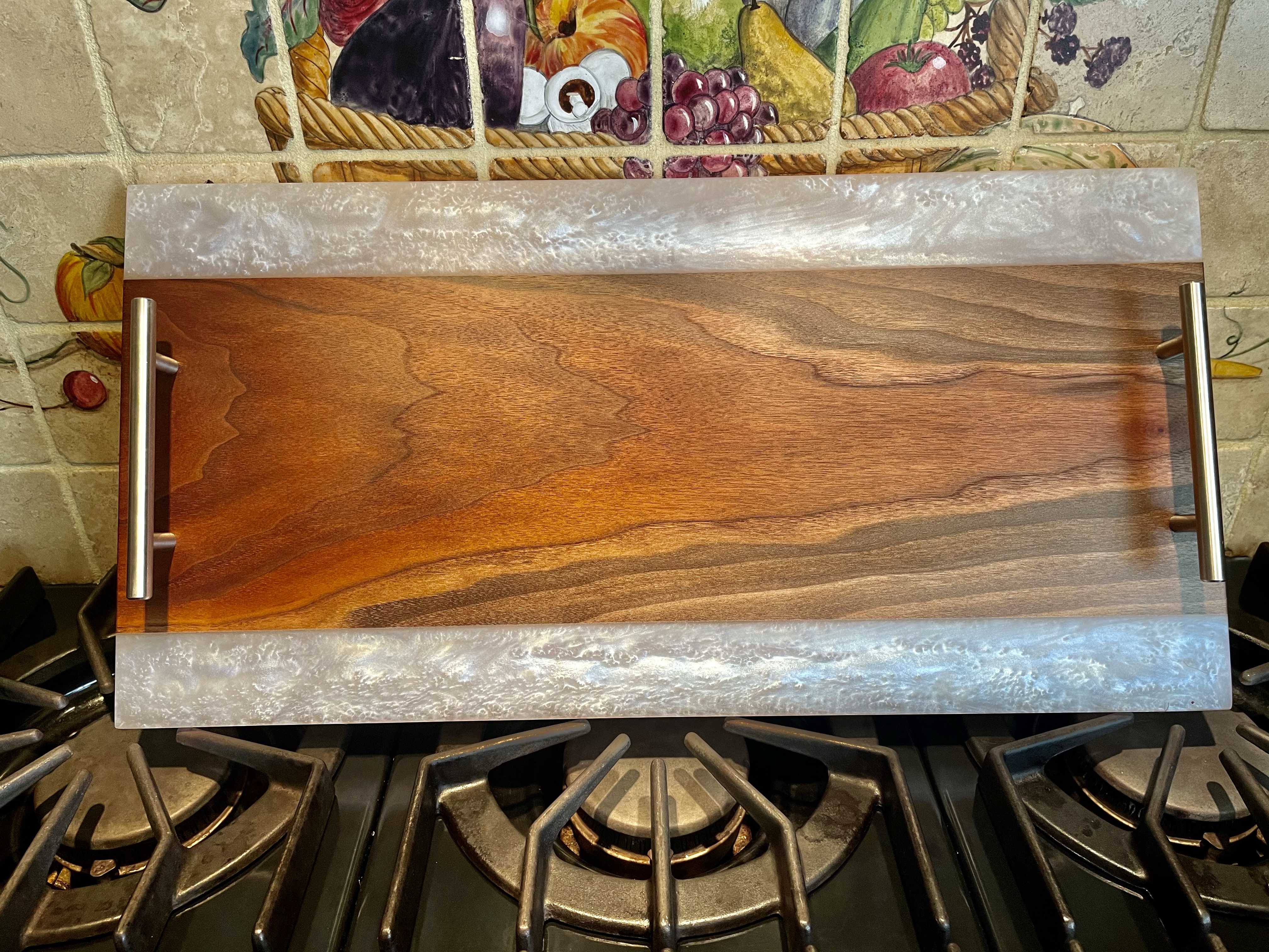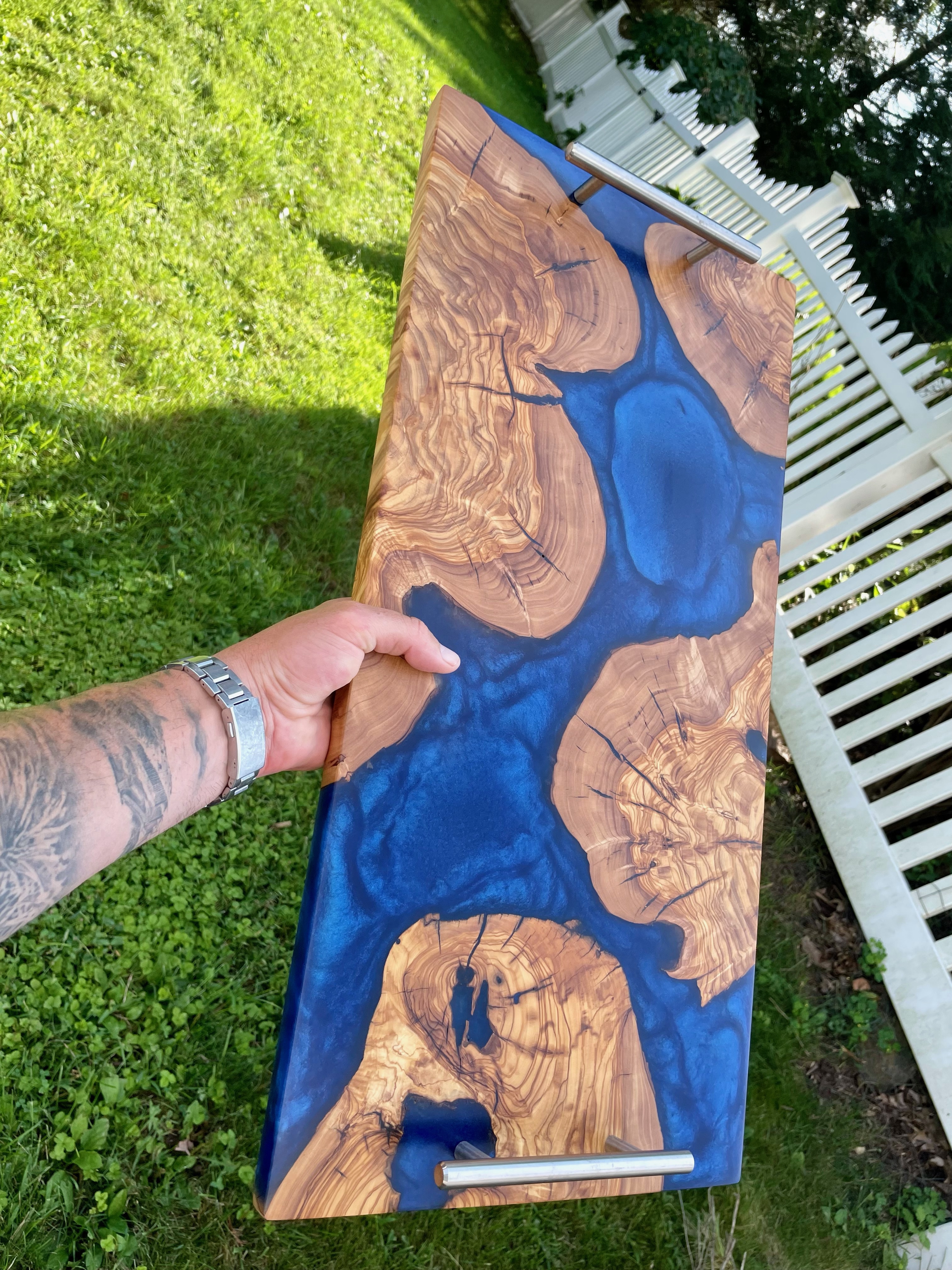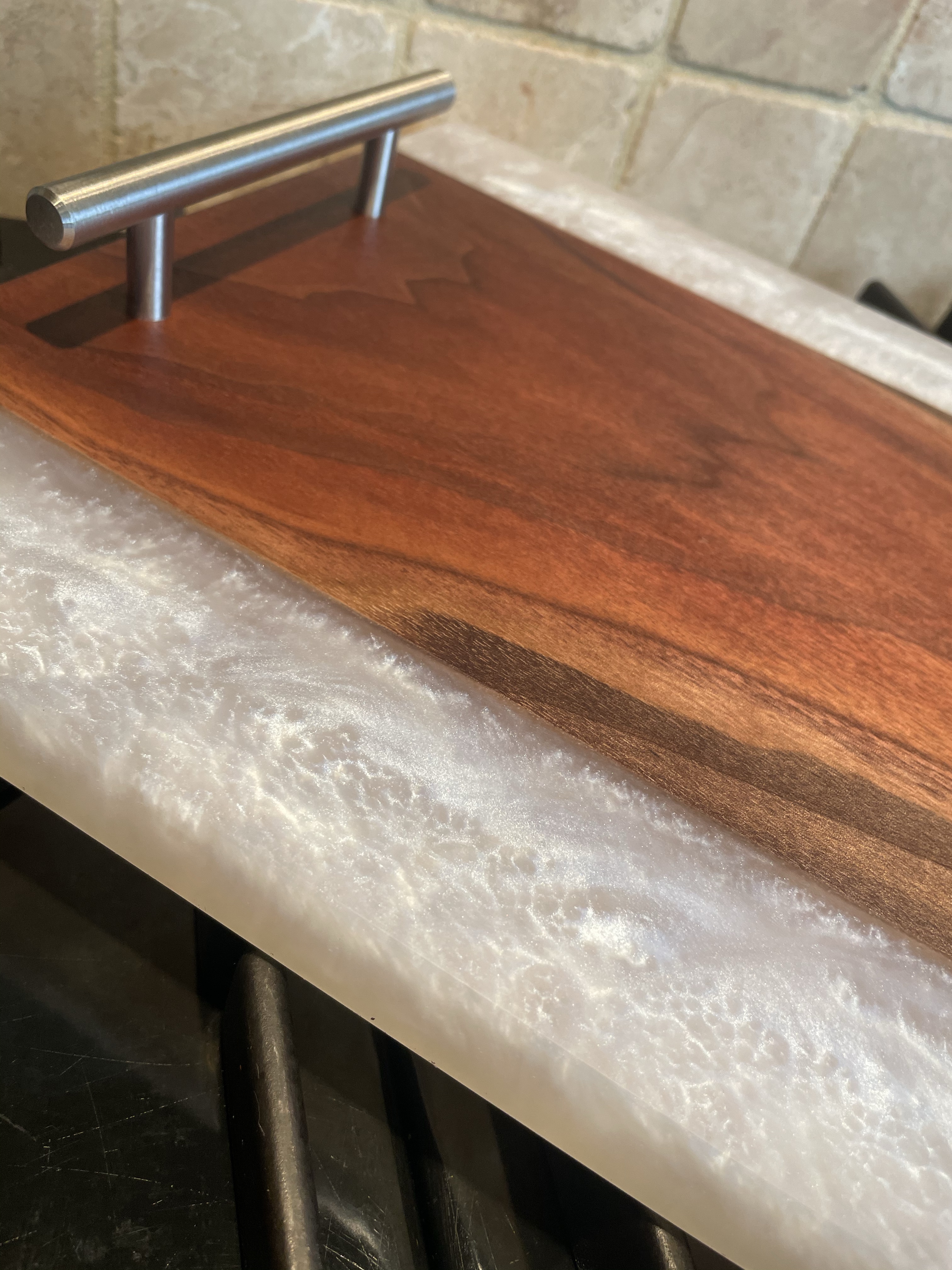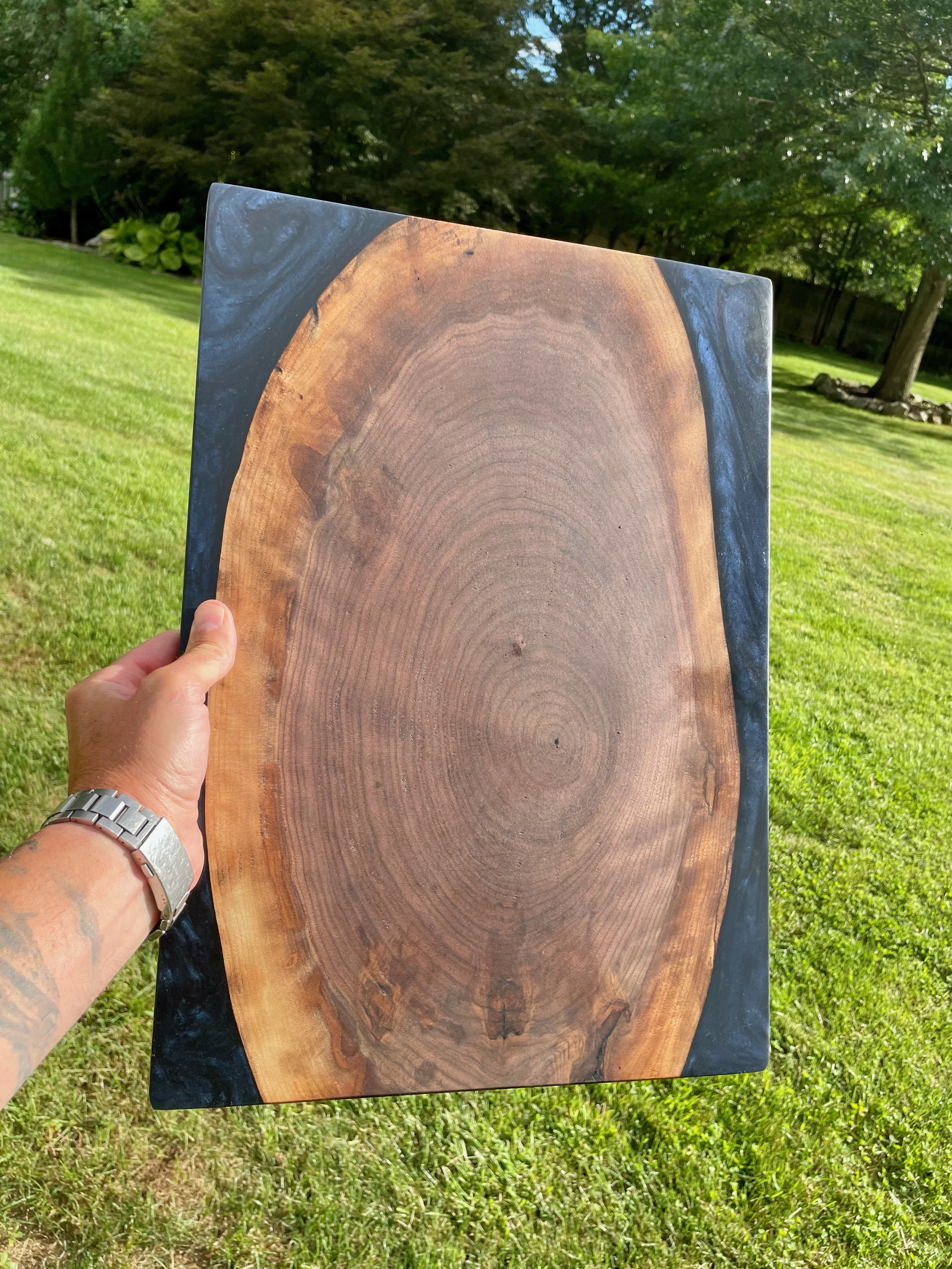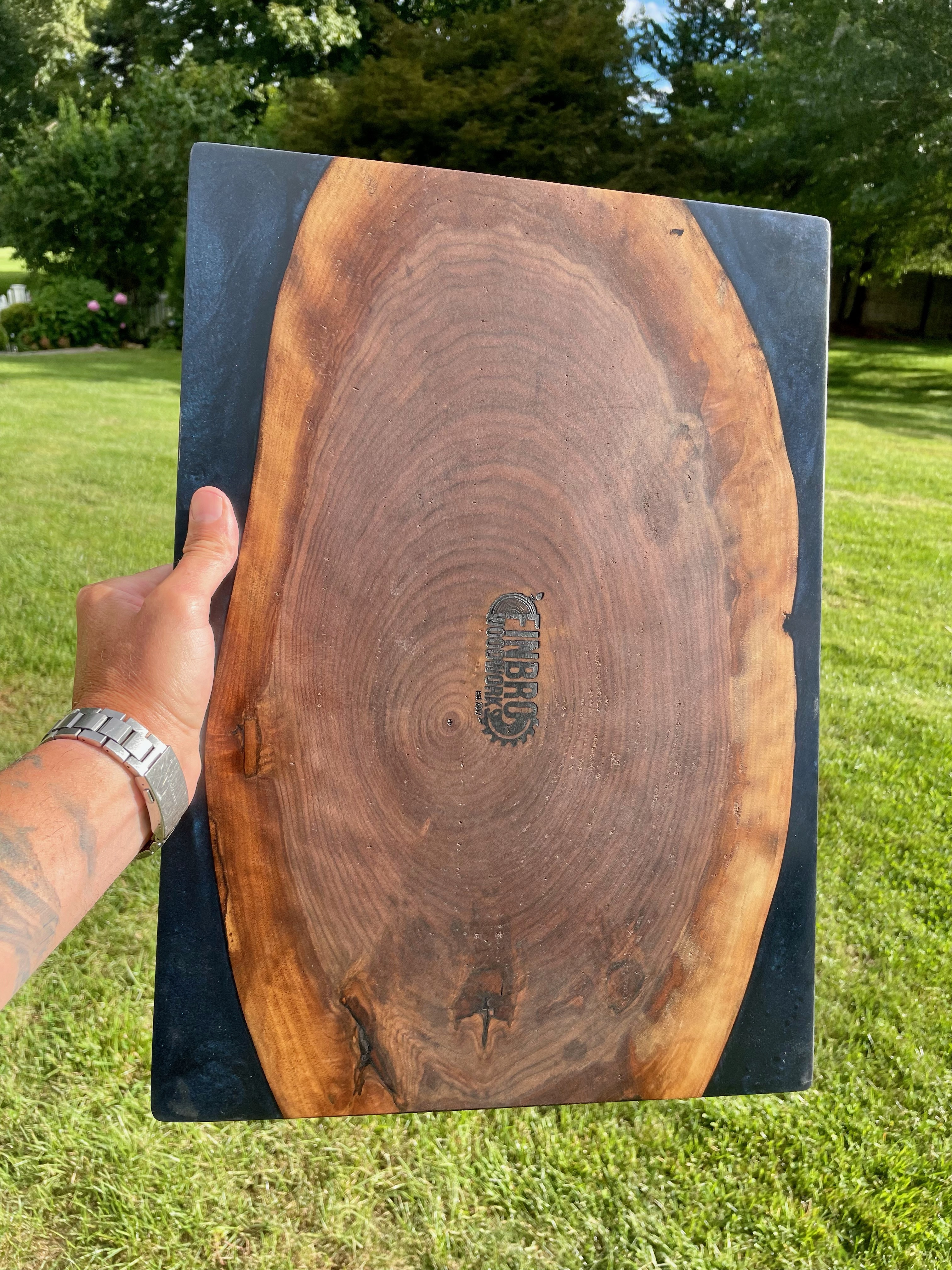 LET’S EAT!! Our charismatic charcuterie boards will provide an eloquent and bold compliment to the culinary bouquet of your choosing. From cured meats and cheeses, to fruits and nuts, olives, spreads and crackers, our hardwood boards, with or without resin accents, are crafted to meet your needs. Typically made from black walnut, cherry wood, olive wood or the like, we can make your artistic culinary presentations not only an experience for the body but for the eyes, mind and soul. Sizes vary, and customer preference is key. Representative standard size of 12”x24”x1” is typical.