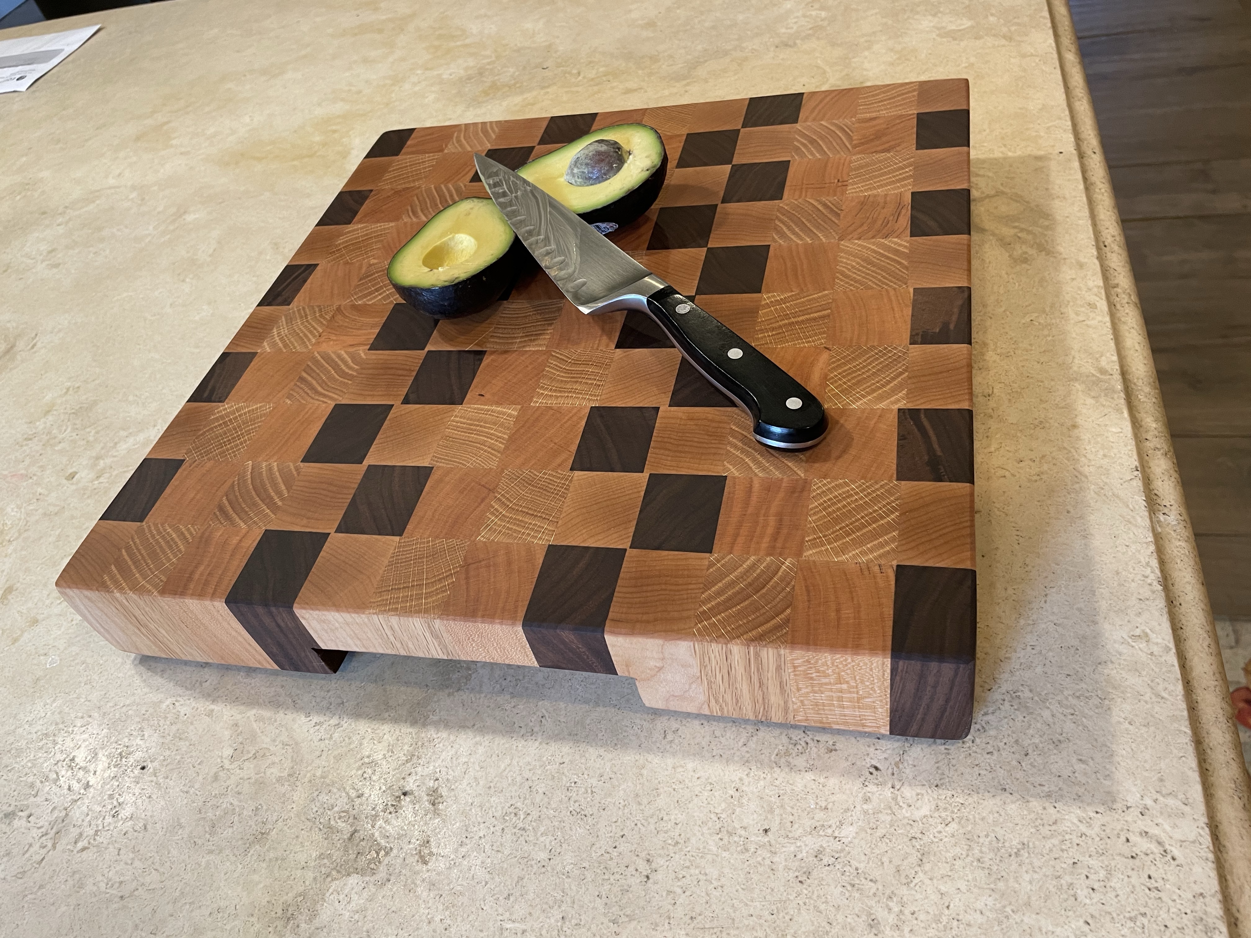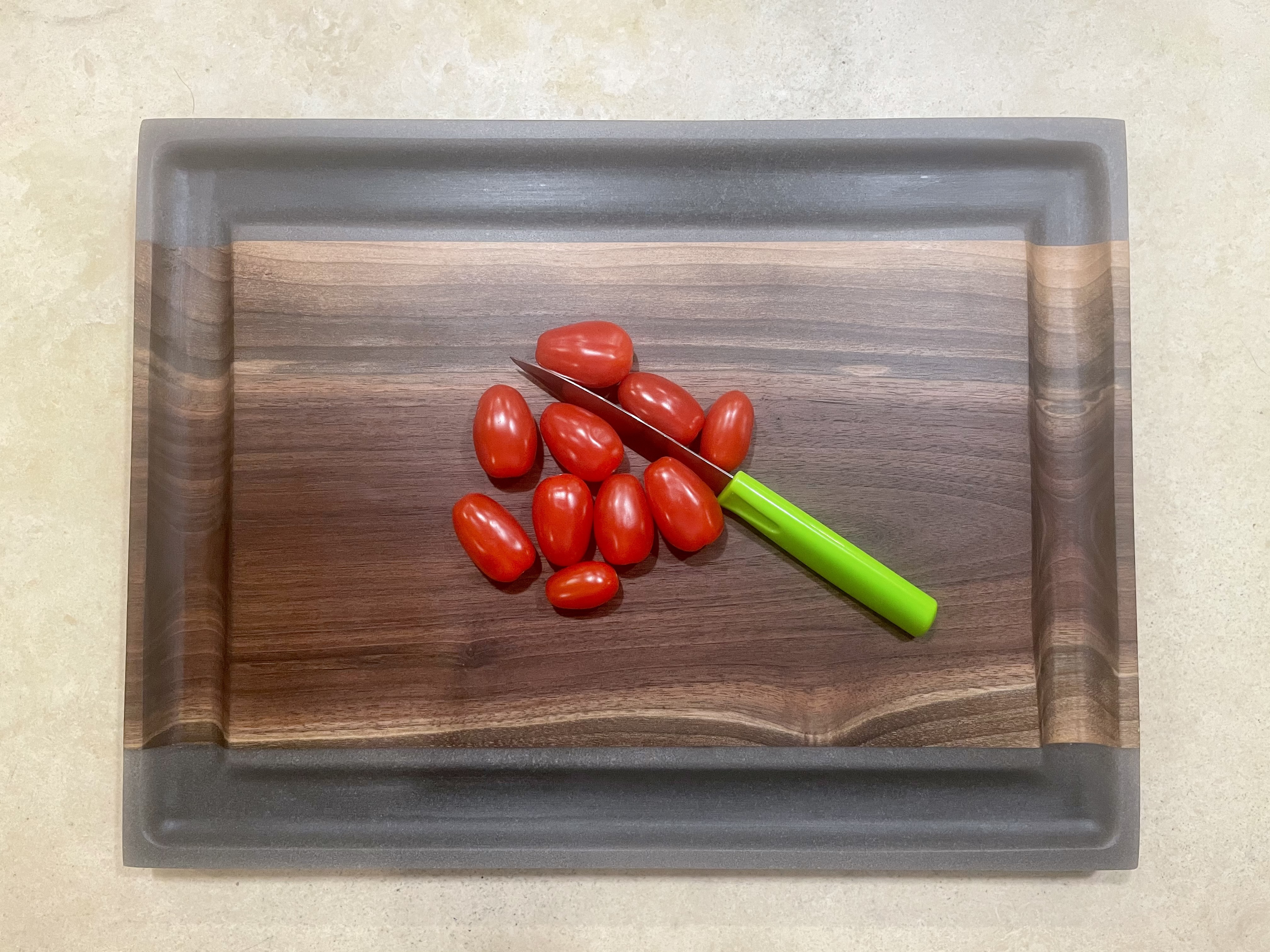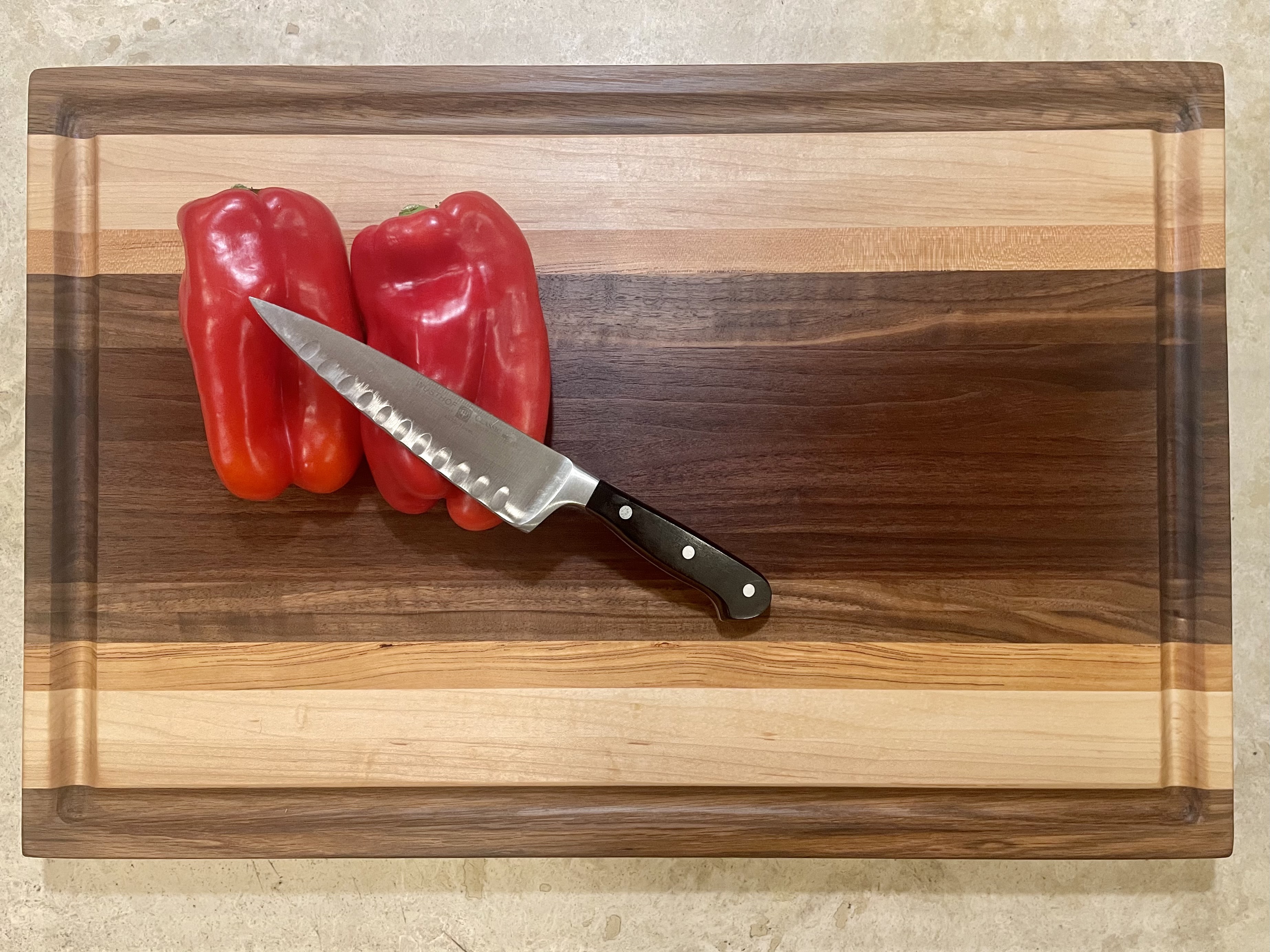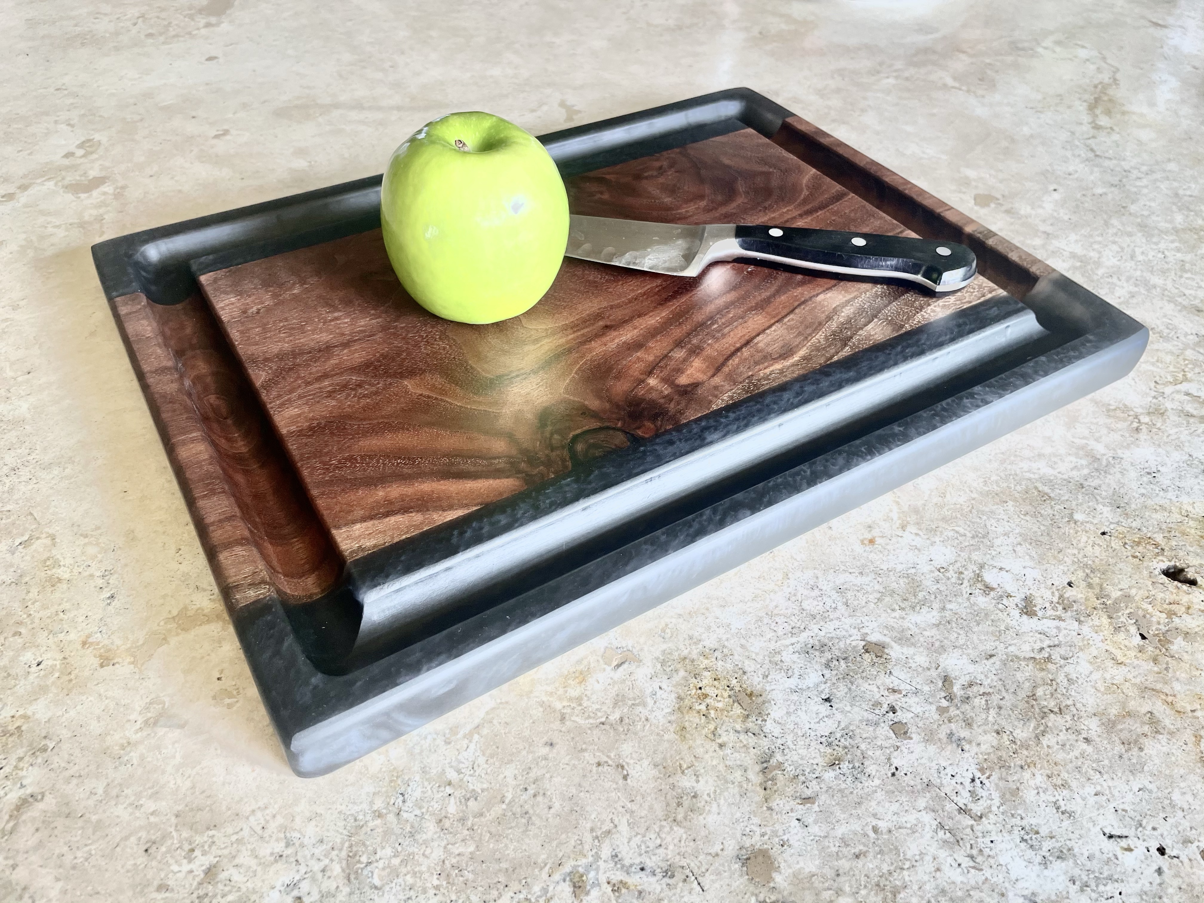 Preparation is the key to success; it allows for maintaining cleanliness and safety while enjoying an explosion of colors, patterns and sizes. All cutting boards are made from the finest hardwoods available to ensure sanitary conditions for food preparation and allow your cutlery to perform at the highest level. While you can enjoy boards made from hardwoods like walnut, oak, cherry, maple, sapele, purpleheart, and padauk, we offer resin boards and mixed resin/wood boards for a broader spectrum of colors, surfaces, and sizes. All boards are available in a plethora of sizes with standard sizes ranging from 12”x12”x1” to 30”x20”x3”.
